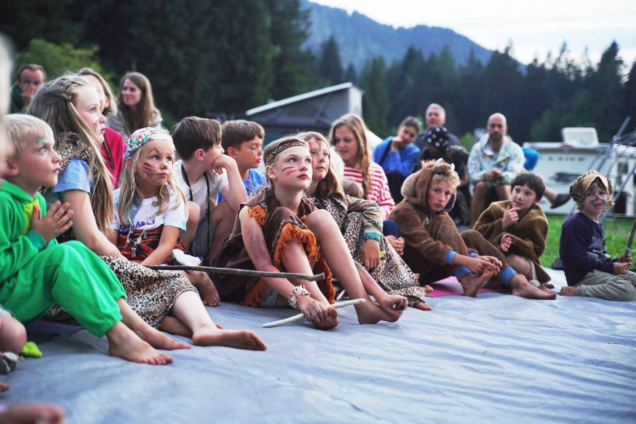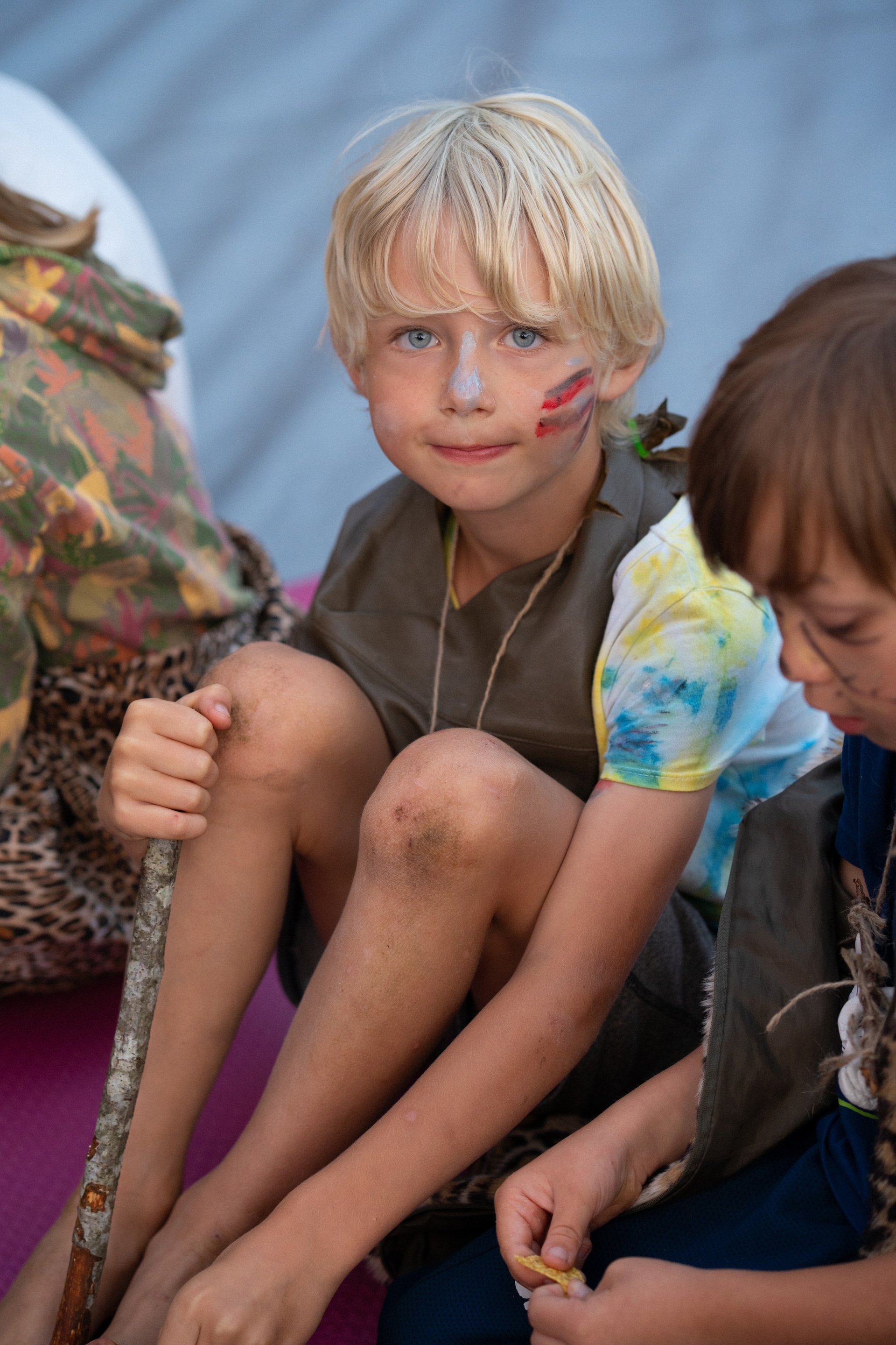 А в конце смены наши первобытные дети и их родители сделали спектакль с песнями и первобытными плясками, это было очень весело и дружно, улыбки на лицах детей и их родителей.