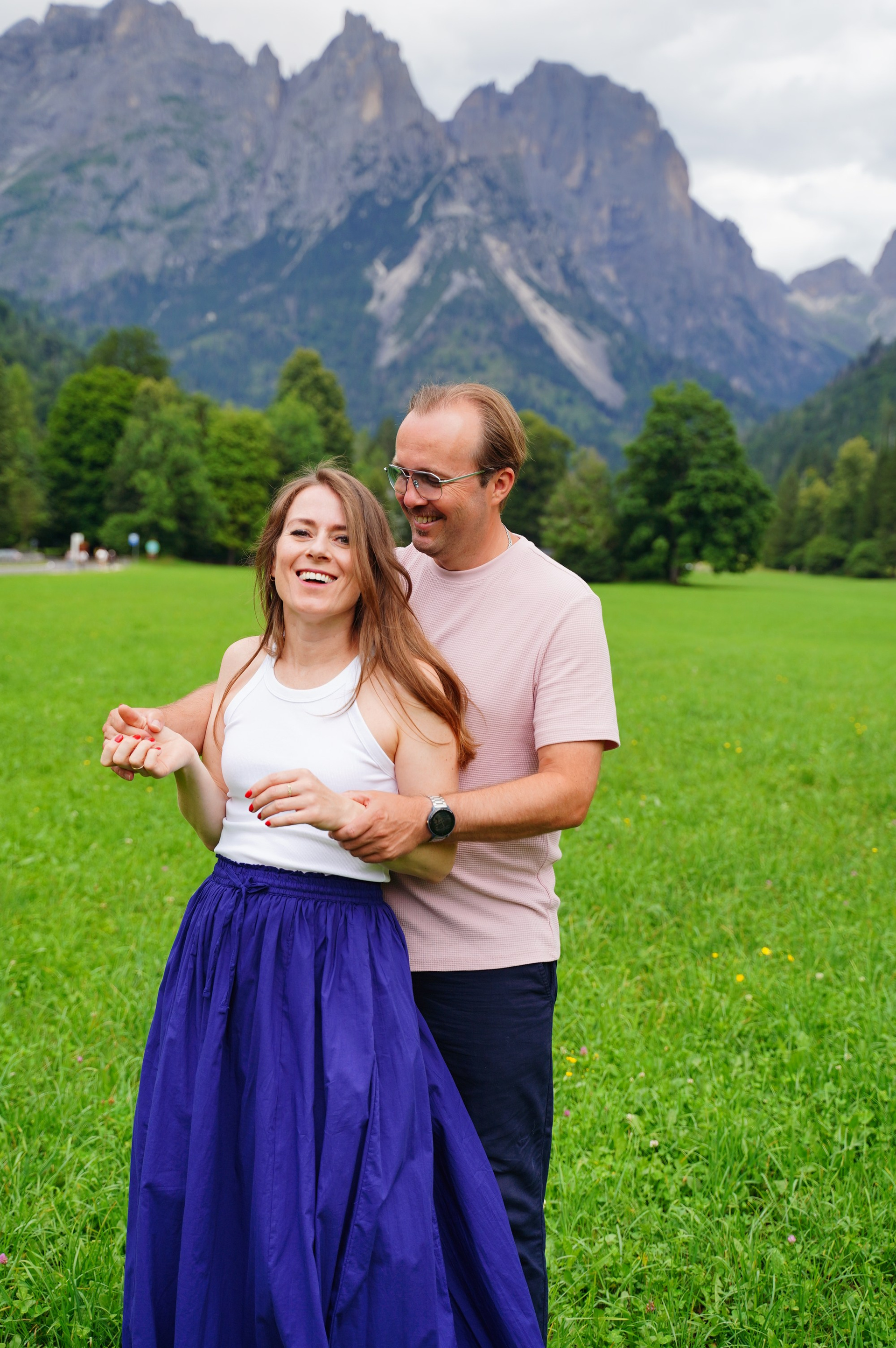 Мы веселись, пели песни под дождем и под гитару, ходили в походы, гладили альпийских коров, рвали букеты, играли, творили, парились в сауне, купались в ледяном озере, много болтали, играли и были собой. Природа в Доломитах как будто ты в декорациях к фильму, эти горы то освещенные солнцем, то закрытые облаками, йога по утрам на мокрой от росы траве, а потом вкусный каппучино и горячий круассан в компании подруг.